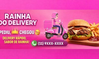 Novo aplicativo de delivery ? Rainha do Delivery arte no canva