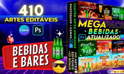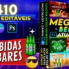 Pack de 410 Artes de Bebidas e Bares Editáveis no Canva e Photoshop | BAIXE AGORA